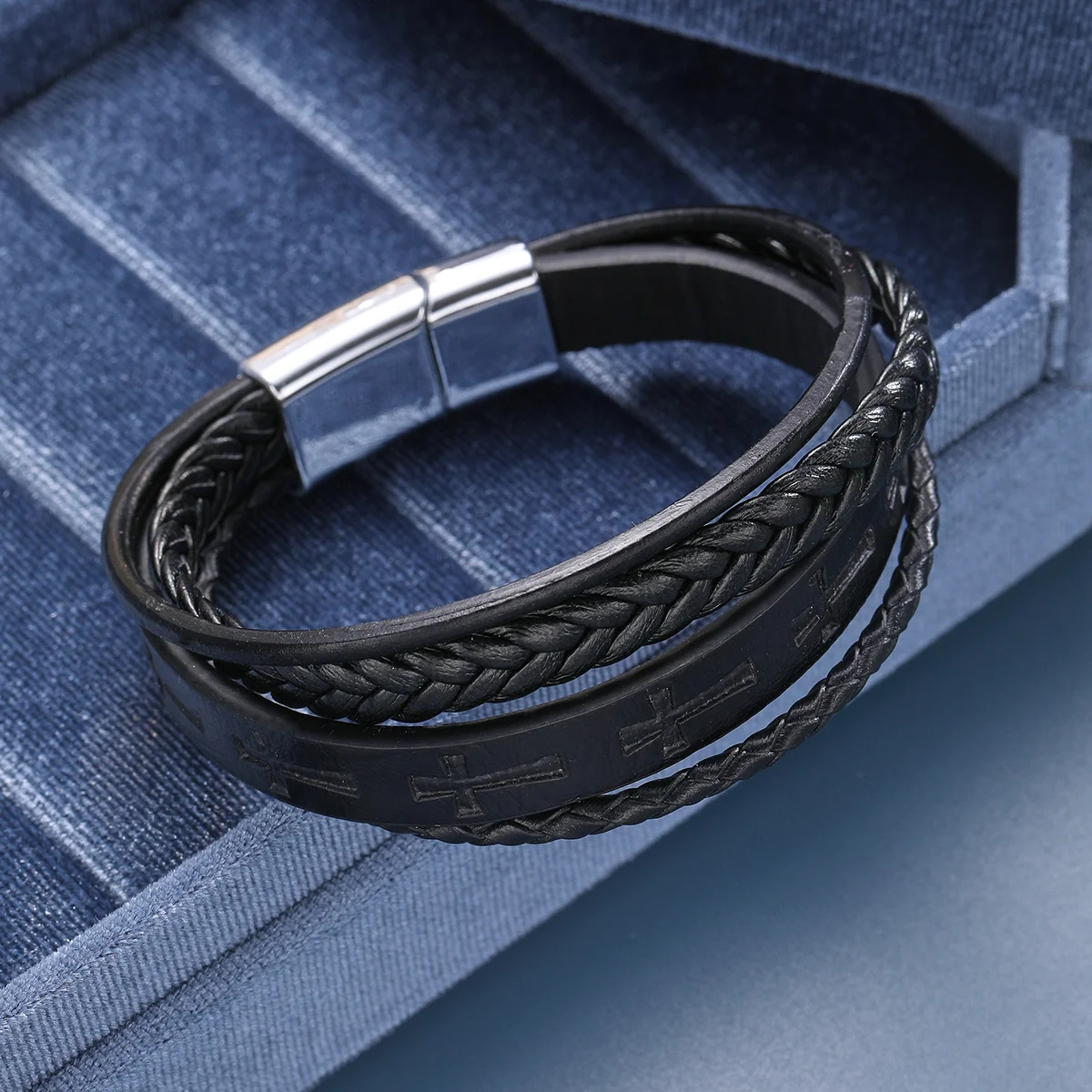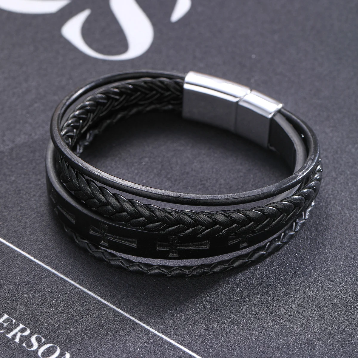 Faixa central com microcruzes gravadas.